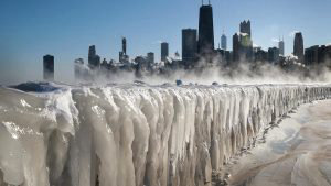 En Chicago, las temperaturas seguían cayendo tras bajar por la mañana a 28 grados centígrados bajo cero (19 grados Fahrenheit bajo cero), rompiendo el récord previo para el mismo día, fijado en 1966.