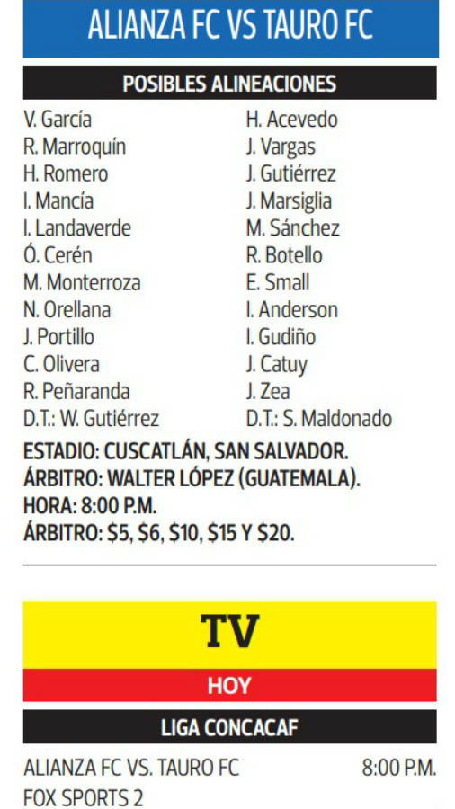 Después de Santa Tecla y Águila, ha llegado el turno de Alianza para jugar los octavos de final de la Liga Concacaf, en casa, ante el Tauro de Panamá.