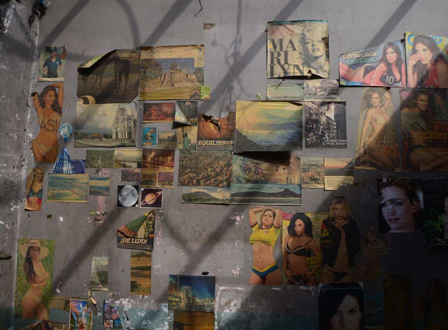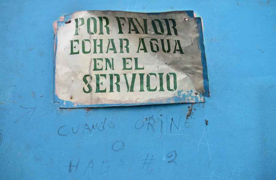 Mural que separa los baños para hombres y mujeres en el antiguo local.