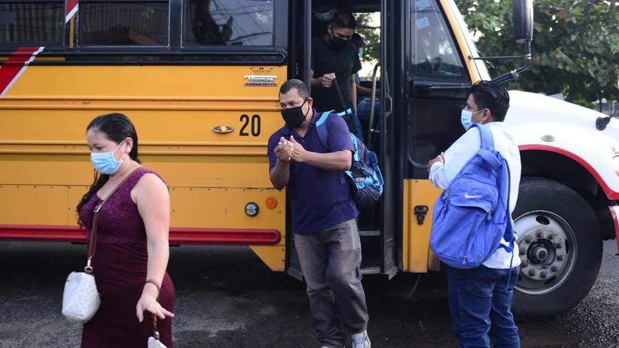 Decenas de salvadoreños usaron el transporte público en el primer día de apertura de este servicio tras meses sin funcionamiento. Foto EDH/ Jessica Orellana