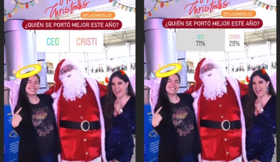 El fin de semana las comunicadoras Georgina Cisneros y la locutora Cristina Hernández se encontraron en un evento navideño en un centro comercial. No desaprovecharon la oportunidad de tomarse una foto para el recuerdo y de paso crear una pequeña encuesta.