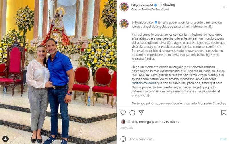 “Bello testimonio. Dios los siga bendiciendo y fortaleciendo”, “ ¡Wooooow! Qué gran testimonio. Es de grandes la humanidad Muy bien, lo felicito, y adelante bendiciones en su lindo hogar”, “Qué bonito testimonio, que Dios y nuestra buena madre les bendigan siempre ”, “ Qué la virgencita siga intercediendo por su familia Amén”, “Bello testimonio y que bello Matrimonio fundado sobre la roca que es Jesucristo. Felicidades”, “Qué bonito testimonio, Billy, todo se puede superar de la mano de Dios y de nuestra Santísima madre, aparte la ayuda de nuestros guías espirituales que aportan esa enseñanza de cambio y fe”, fueron parte de los mensajes que el conductor recibió tras sincerarse con su más de 33,000 seguidores.